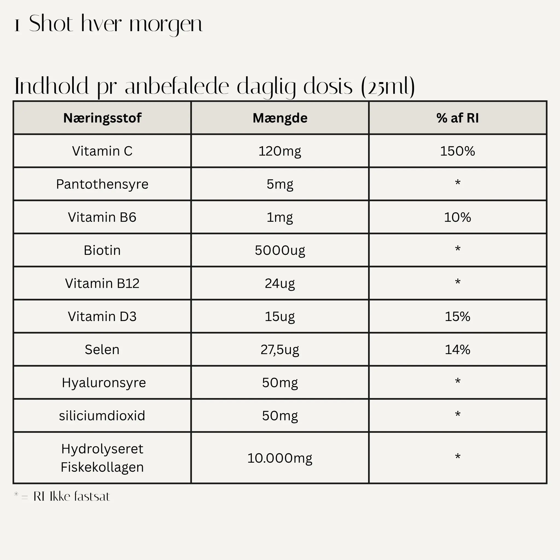 Det har en frisk smag af bær – uden klumper eller fiskesmag. Shot-formatet gør det nemt at indtage som en del af din daglige rutine.